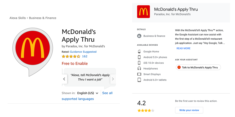 It's a world first not only for the quick-service industry, but job-seekers everywhere. Available on any device you can talk with Amazon's Alexa or the Google Assistant.