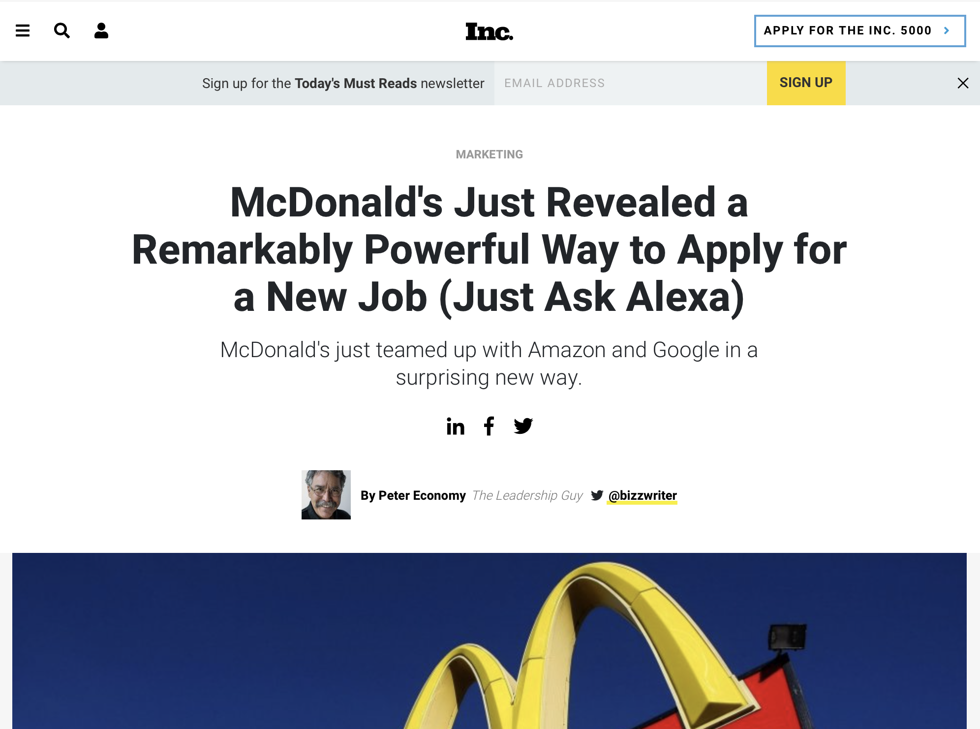 Each year McDonald’s needs millions of new job applications worldwide to keep up with operations. So we developed a global solution that tapped into a massive segment of potential applicants: people with virtual assistants, A.K.A more than a quarter of adults.